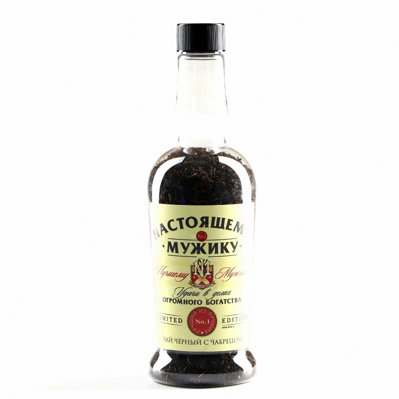 Чай черный с чабрецом в подарочной бутылке.