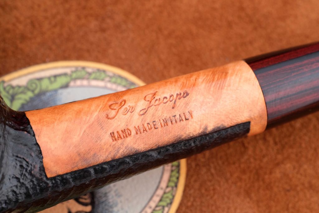 На трубке нанесён фирменный девиз мастерской - PER ASPERA AD ASTRA («Через тернии к звёздам», лат.), а также присутствуют маркировки: Ser Jacopo, Hand Made in Italy и грэйд S1 A.