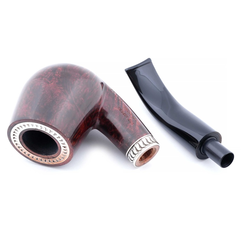 Отличительной особенностью данной модели являются серебряные элементы: кольца из серебра 925 пробы украшают как чубук, так и чашу, придавая трубке более выразительный и статусный вид.