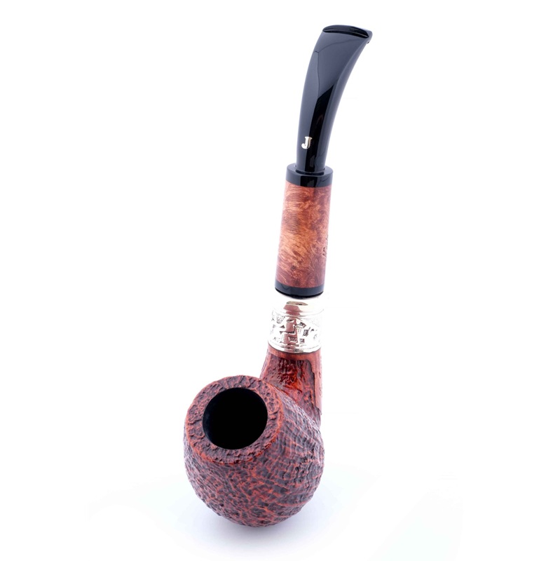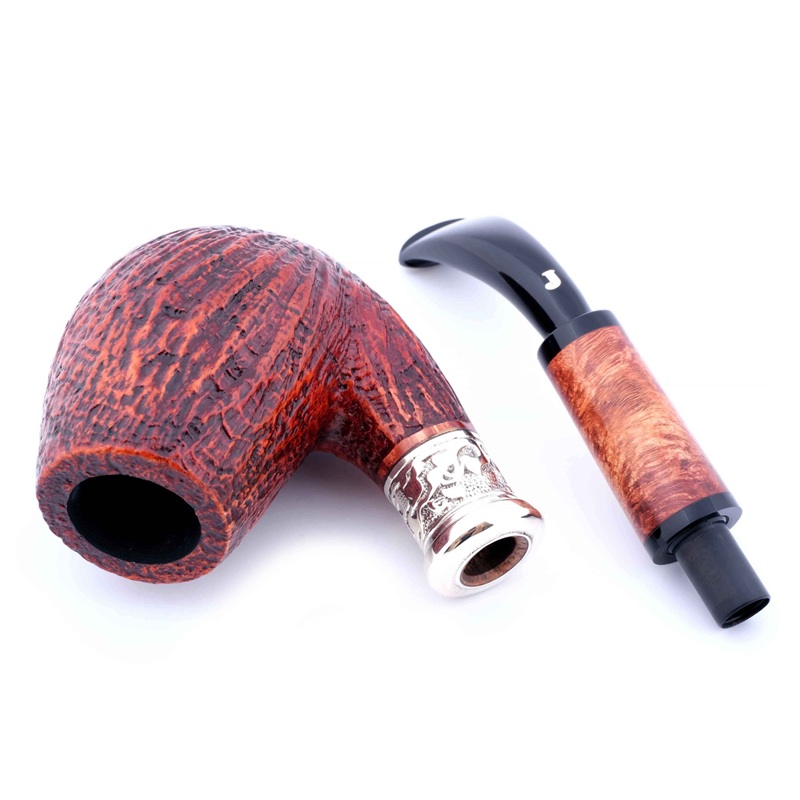 Чубук и мундштук украшены двойным кольцом из цельного серебра 925 пробы. Дополнительный акцент придаёт вставка из бриара на чубуке, подчёркивающая характер изделия и мастерство исполнения.