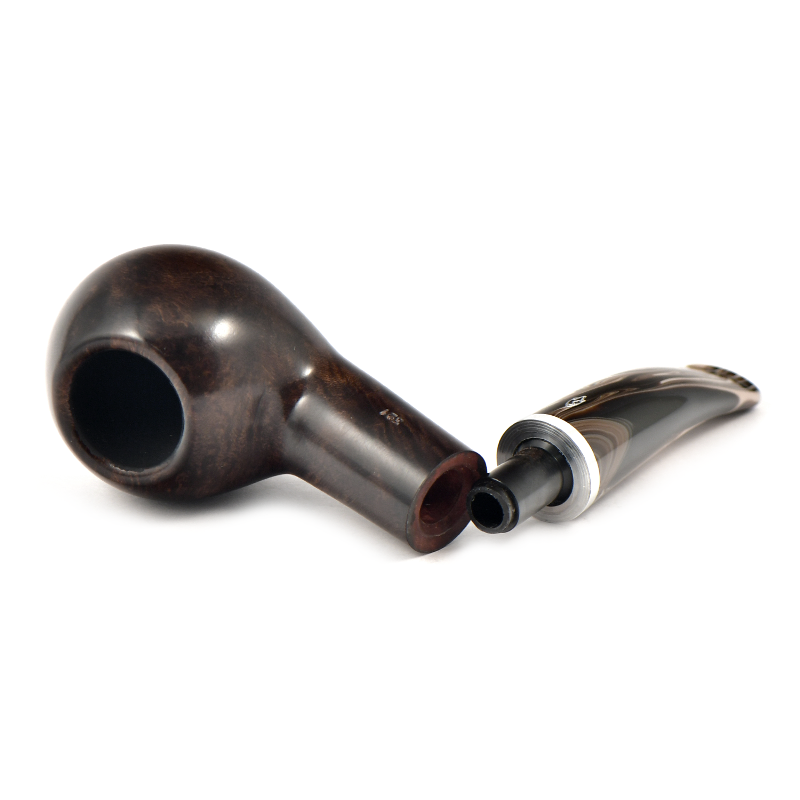 Модель Morellina Smooth Brown сочетает в себе тёплый тёмно-коричневый цвет чаши с гладкой полировкой и характерный акриловый мундштук глубокого коричневого меланжевого оттенка, создающий гармоничный и изысканный образ.
