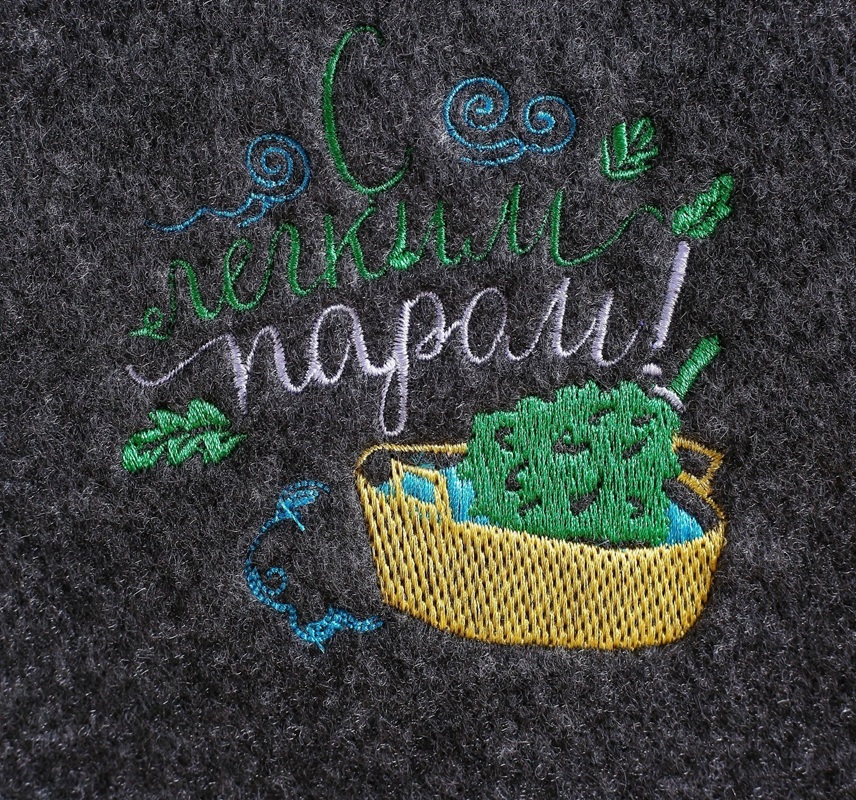 • банная шапка с вышивкой «С лёгким паром»;