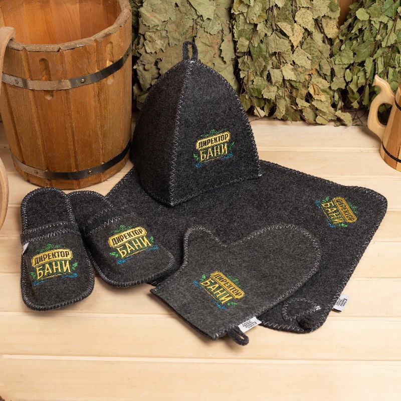 Набор для парилки- 9291732 (Шапка, коврик, варежка, тапочки)