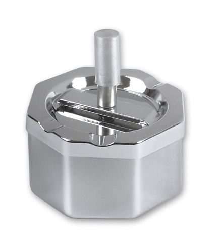 Пепельница S.Quire восьмиугольная, сталь, покрытие никель, серебристый, с серебристой ручкой, 90 мм