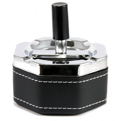 Пепельница S.Quire восьмиугольная, сталь, покрытие никель + искусственная кожа, серебристая с черной вставкой, 85 х 85 х 90 мм