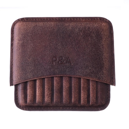 Сигартеница P&A из высококачественной натуральной буйволиной кожи, чрезвычайно прочной и износостойкой, с финишной отделкой «искусственное старение» в винтажном стиле Дикого Запада. Производится итальянской компанией Parenti-Agostinelli из Милана.
