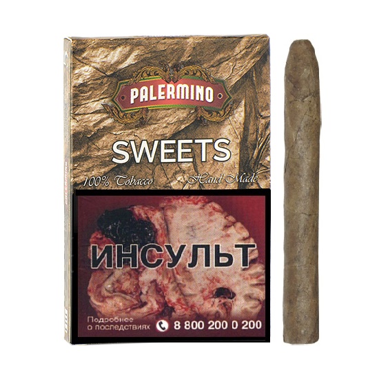 Сигариллы Palermino SweetsСтрана Производитель: Филипины (Tabaqueria de Filipinas)Длина: 77 ммДиаметр: 11 ммЦена за 1 пачку. В пачке 5 сигарилл. В блоке 5 пачек.