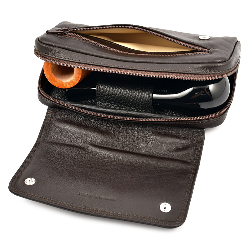 Сумка c кисетом, из высококачественной, мягкой кожи, для двух трубок.