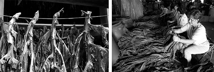 Сбор табака происходит вручную и этот период приходится на конец июня, когда у табачного куста зародится 12-ый листок. В этот период само растение достигает 60-80 см. в высоту. Как только произошел сбор табака, растение вывешивают в в амбары, не имеющие стен. Здесь в течение 2-3 недель растение высушивается. Затем листья табака обмывается водой и достается с центра жилка.