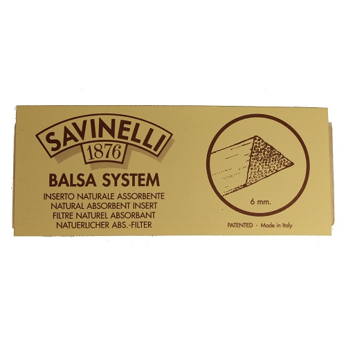 The Savinelli Balsa System представляет собой систему фильтрации с использованием природных атрибутов пробкового дерева. Это позволяет поглощать влагу и примеси из дыма, без добавления химических элементов. Эта способность поглощения обусловлена чрезвычайно пористыми волокнами бальсы,  для идеального дыма без изменения вкуса и аромата табака.