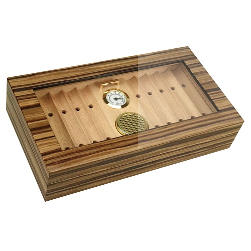 Хьюмидор Aficionado Braydon на 40 сигар с отделкой из шпона дерева зебрано, покрытого лаком.Корпус выполнен из дерева, обеспечивающего стойкость к деформации при колебаниях температуры и влажности.