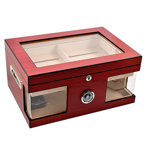 Хьюмидор 09060.Вместительность: 100 сигар;Размеры: 38 см х 26,5 см х 18,5 см;Вес 3,6 кг.Материал: МДФ/Стекло/Кедр.Оборудован аналоговым гигрометром и увлажнителем.Страна производcтва: Китай.