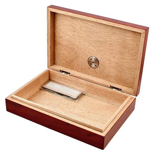 Хьюмидор 09423.Вместительность: 12 сигар;Размеры: 26 см х 22 см х 7 см;Вес 0,7 кг.Материал: Шпон/МДФ/Кедр.Оборудован аналоговым гигрометром и увлажнителем.Страна производcтва: Китай.
