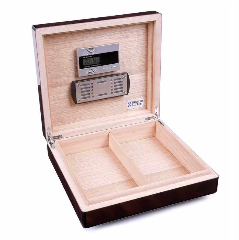 Хьюмидор премиум-класса вместимостью до 30 сигар от американского бренда Howard Miller - известного производителя интерьерных аксессуаров. Модель отличается массивным исполнением, строгим классическим дизайном и высоким качеством отделки.
