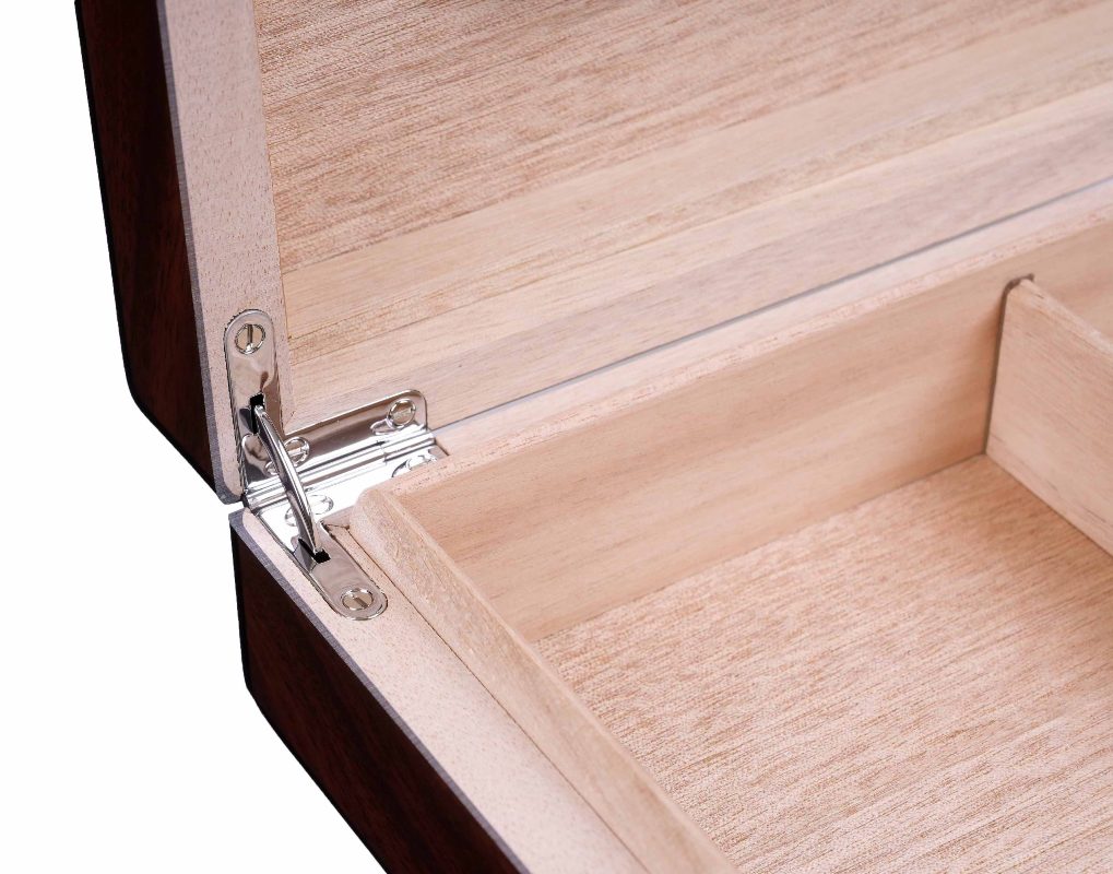 Внутреннее пространство облицовано испанским кедром, который поддерживает оптимальный уровень влажности и способствует правильному хранению сигар.