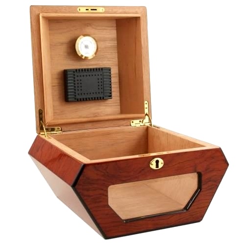 Хьюмидор для сигар Cuban WheelРазмеры 21 х 21 х 12 смМатериал: Кедр, шпон, стеклоОборудован аналоговым гигрометром и увлажнителем.