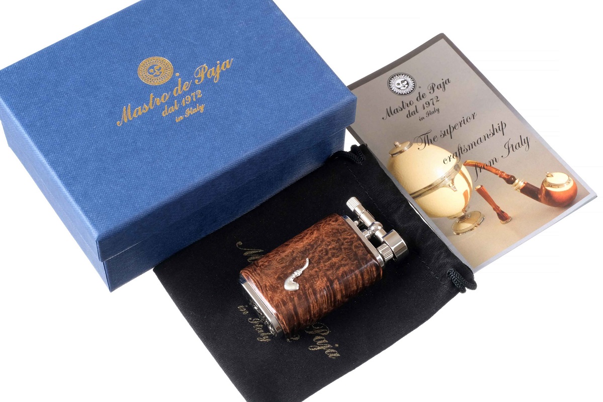 Трубочная газовая зажигалка с надежным кремневым механизмом поджига. Изделие премиум-класса от итальянских мастеров из компании Mastro de Paja, всемирно известной своими курительными трубками и аксессуарами.