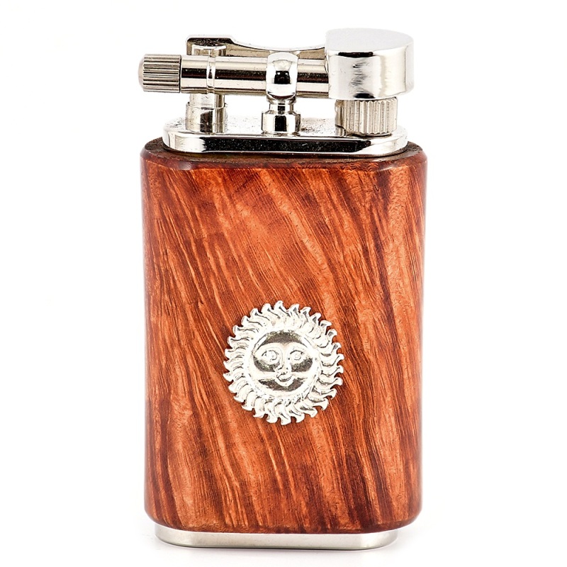 Корпус зажигалки выполнен из массива бриара - благородного и дорогостоящего материала, традиционно используемого при изготовлении курительных трубок. Эмблема Mastro de Paja в виде солнца изготовлена из серебра 925 пробы, что подчеркивает статус и эксклюзивность изделия.
