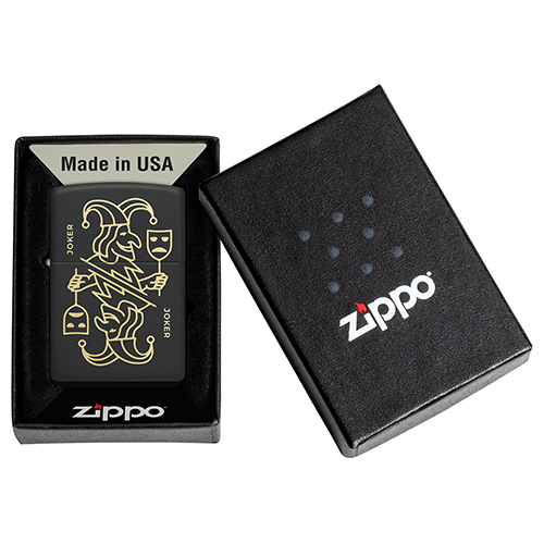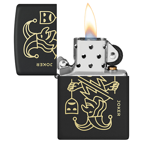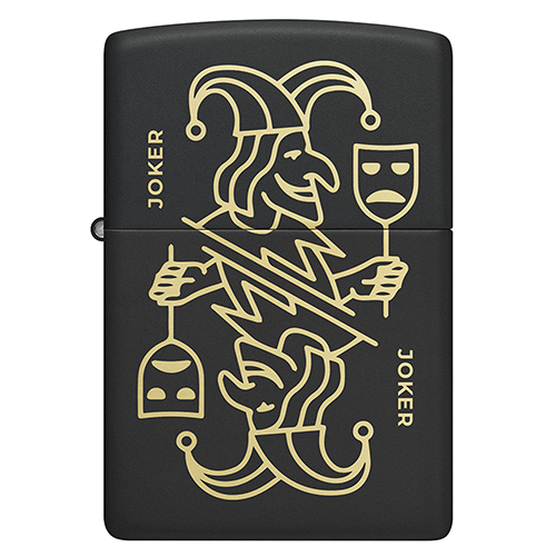 Изысканный образ карты Джокера раскрывается на поверхности этой классической зажигалки с покрытием Black Matte. Латунные отблески, проступающие сквозь тонкую лазерную гравировку, создают эффект глубины и придают дизайну загадочный, почти мистический характер. Строгость матового черного фона подчёркивает детали рисунка и делает зажигалку выразительным аксессуаром с характером.