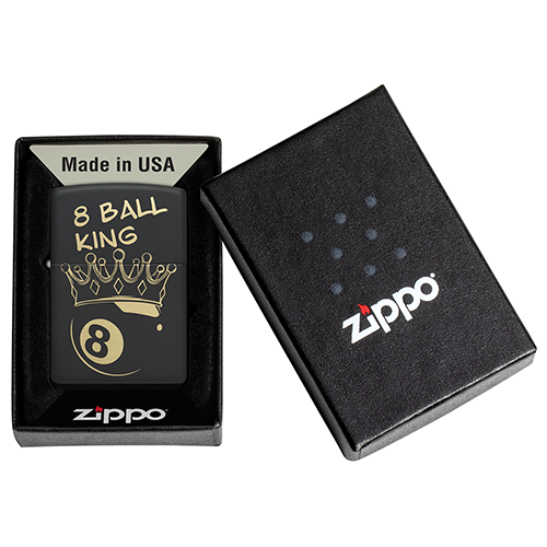 Zippo 46291Классическая матовая черная зажигалка идеально подойдет любому чемпиону бильярдного зала.На ней лазерной гравировкой изображен шар «Восьмерка», украшенный короной.Оба борются внутри каждого из нас, и победит только тот, которого вы кормите.Поставляется в подарочной коробке.Для оптимальной работы рекомендуется использовать только оригинальное топливо "Zippo".• Настоящая ветроустойчивая зажигалка Zippo с характерным фирменным "щелчком".• Полностью металлическая конструкция и абсолютная ветроустойчивость.• Для оптимальной работы рекомендуется использовать оригинальные кремни, фитили и высококачественное топливо "Zippo".• Сделано в США.• Топливо: высококачественное топливо "Zippo" (продаётся отдельно).